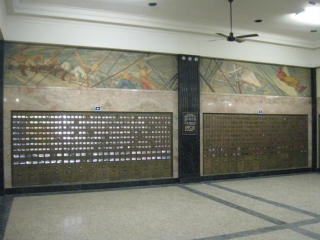 LaFarge painted the murals in 1938, under the auspices of the Public Works of Art Program.